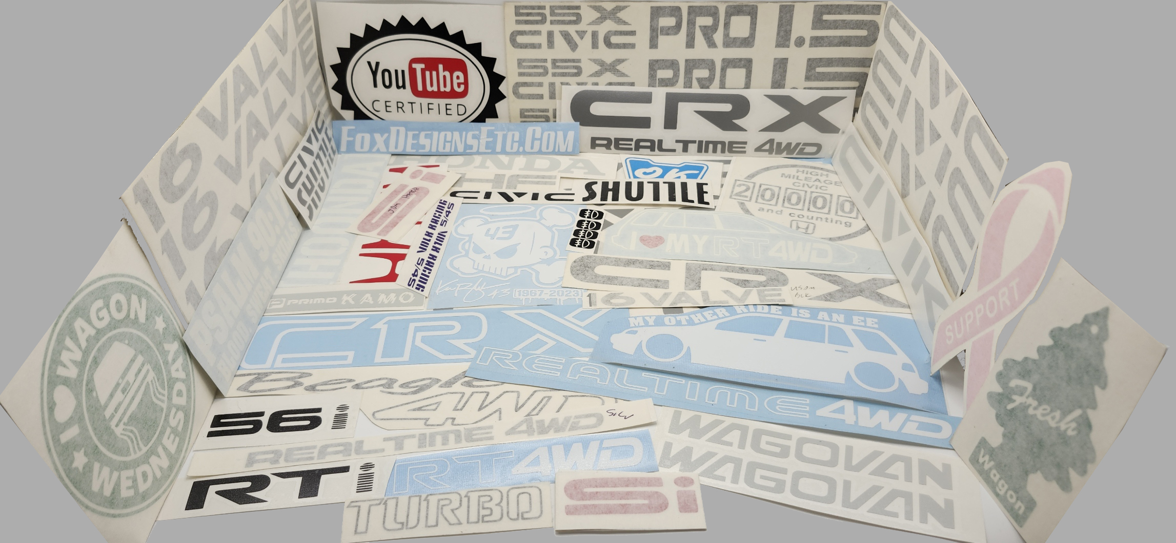 Bring your ideas to life with our precision die-cut vinyl decals, crafted for lasting style and durability. From obsolete reproduction automotive graphics, to original Fox Designs Etc. designs or your own custom concepts, we specialize in turning designs into reality.